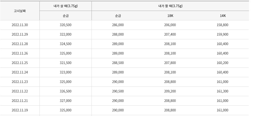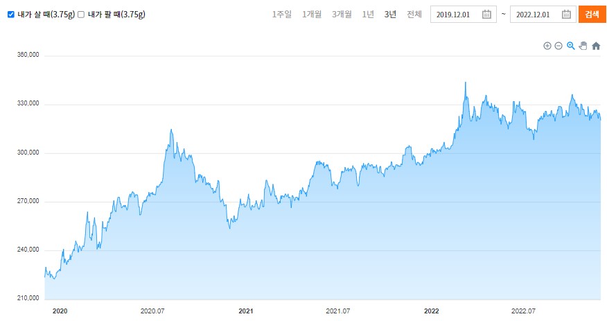 한국금거래소 금 시세 조회(최근 3년)