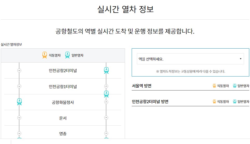 1. 직통열차 : 서울역과 인천국제공항간을 무정차(논스톱) 운행하는 고급형 열차