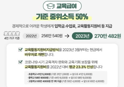 (4인 가구 기준) 2022년 : 235만 5,697원 → 2023년 : 235만 8,453원