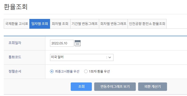그래서 일자별 과거 환율조회도 해 볼 필요가 있습니다.