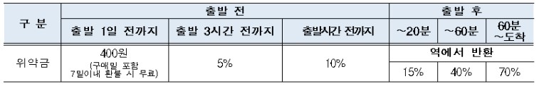 5. 반환 위약금 : 주말(금~일, 공휴일) 기준 위약금 적용
