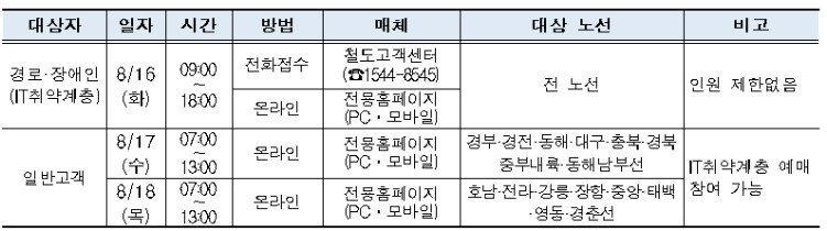 단, 경로, 장애인의 경우 전화접수가 가능하며, 예매기간은 8월 16일 하루 입니다.