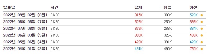 NFP 발표시간 : 매월 첫 주 금요일 21시 30분(한국시간)