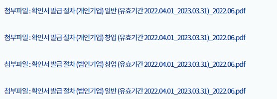 👉 유효기간 2022.04.01 ~ 2023.03.31까지 유효한 확인서 발급
