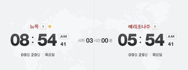 그냥 간단히 뉴욕과 애리조나만 비교를 해봐도 3시간의 시차가 있습니다.